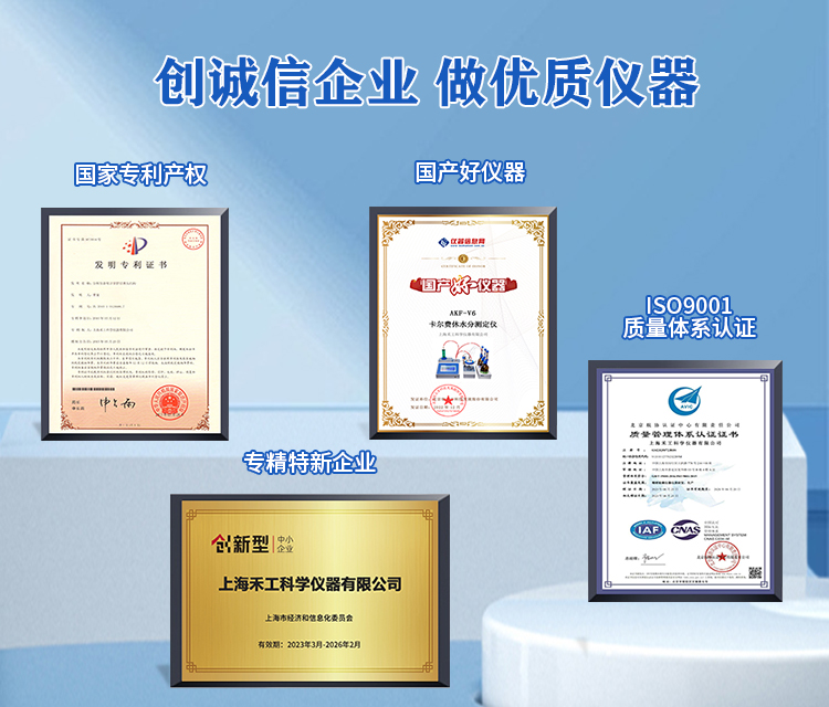 AKF-V1N容量法卡爾費休水分測定儀是上海禾工科學儀器有限公司生產的具有自主知識產權的容量法卡爾費休水分測定儀。儀器采用全新的機械電子設計技術和人性化的界面設計,質量可靠,測定范圍寬(0.001-100.00%),測量精度高,經濟實用,可用于準確分析固體、液體、氣體樣品中的結晶水、吸附水、游離水。