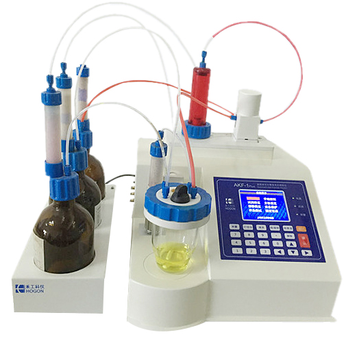 儀器配置 1. AKF-2010V卡爾費(fèi)休水分測(cè)定儀主機(jī); 2. 全封閉安全滴定池組件; 3. 雙鉑針電極; 4.磁力攪拌臺(tái)(50-1200轉(zhuǎn)/分,標(biāo)配) 5. 10L微量注樣針 6.5ml樣品進(jìn)樣針; 試劑 1.滴定劑:醛酮類(lèi)